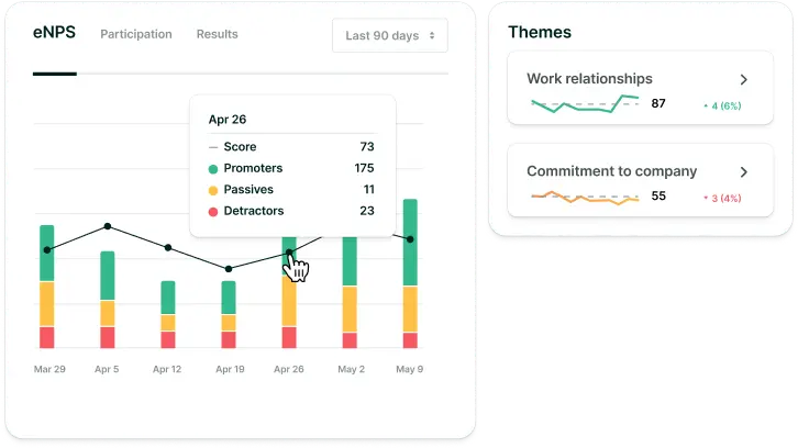 Run targeted pulse surveys, onboarding and exit surveys, eNPS surveys, and custom surveys.