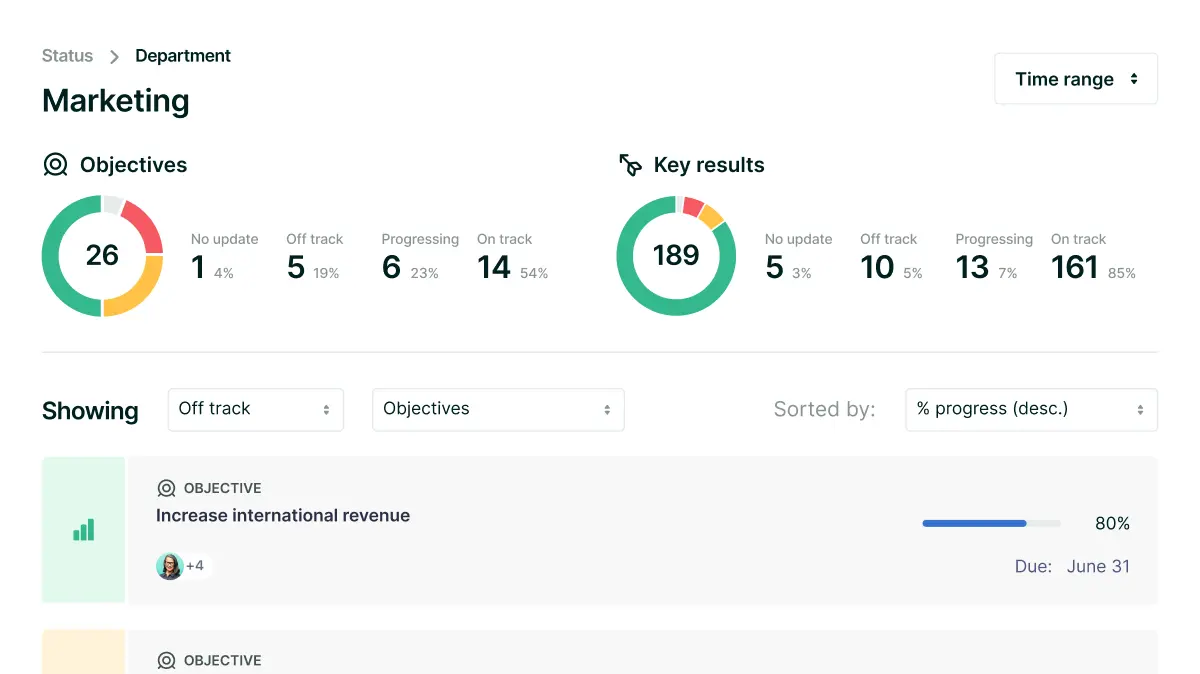 Ensure alignment across your entire organization by making strategic objectives crystal clear. Lattice gives you a speedy, frictionless platform for setting, tracking, and reflecting on goals.