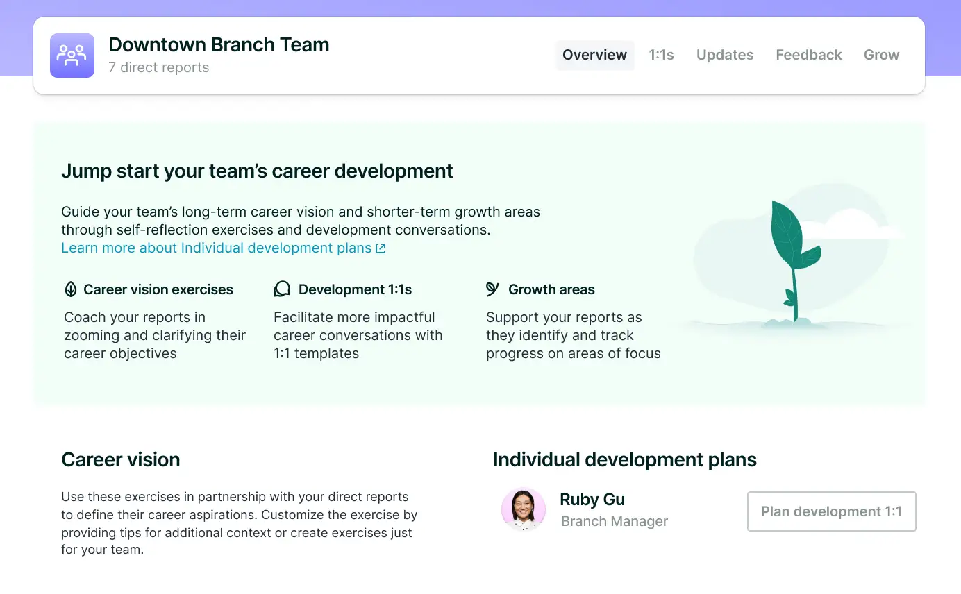 Identify top performers and equip every person with intuitive tools to own their growth and development.
